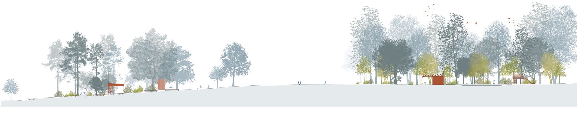 En reprenant les objectifs de cette image directrice, une première phase d’étude de faisabilité est menée afin de préciser et interroger les intentions des futurs espaces ludiques. Leur position, leurs accès et leur emprise sont étudiés, trois variantes sont dessinées. Chacune répond à la nouvelle demande d’accessibilité pour les personnes à mobilité réduite (enfants). Ce travail permet de requestionner l’image directrice et de valider, ou non, ses propositions au regard des usages et besoins actuels redéfinis.
